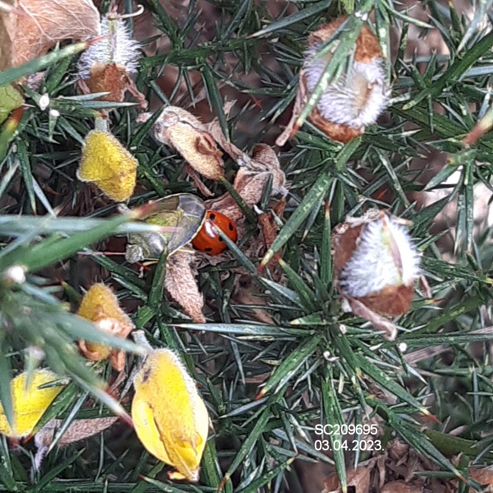 | the Hairy Shieldbug (aka Sloe Bug) was still in the same gorse bush. |